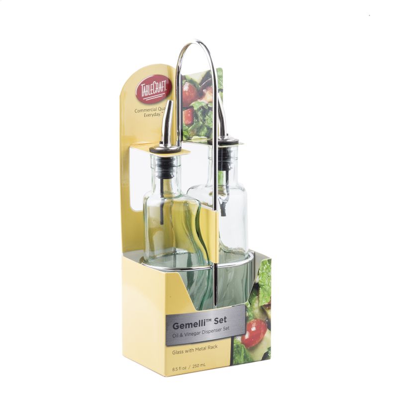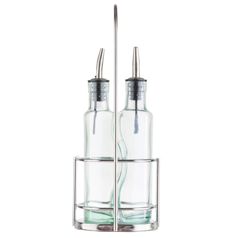 BOTTLE GLASS VINEGAR/OIL W/BLK RACK